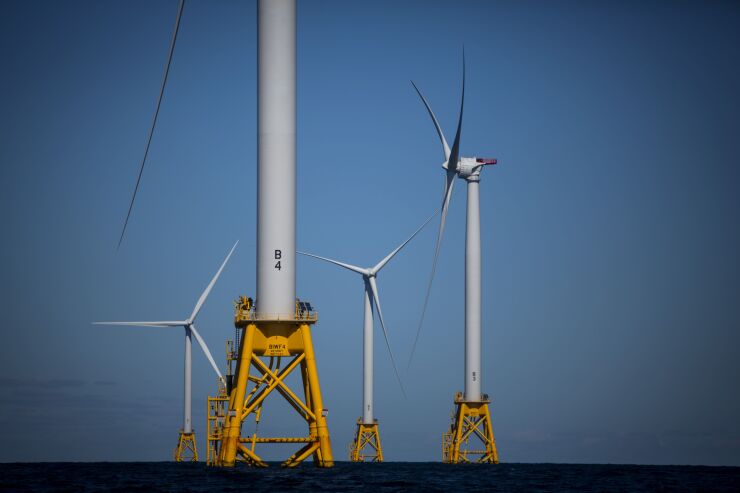 The Ørsted Block Island Wind Farm off Block Island, Rhode Island, is one of several projects in New England underway to develop wind energy; Maine hopes to begin making progress towards its first.