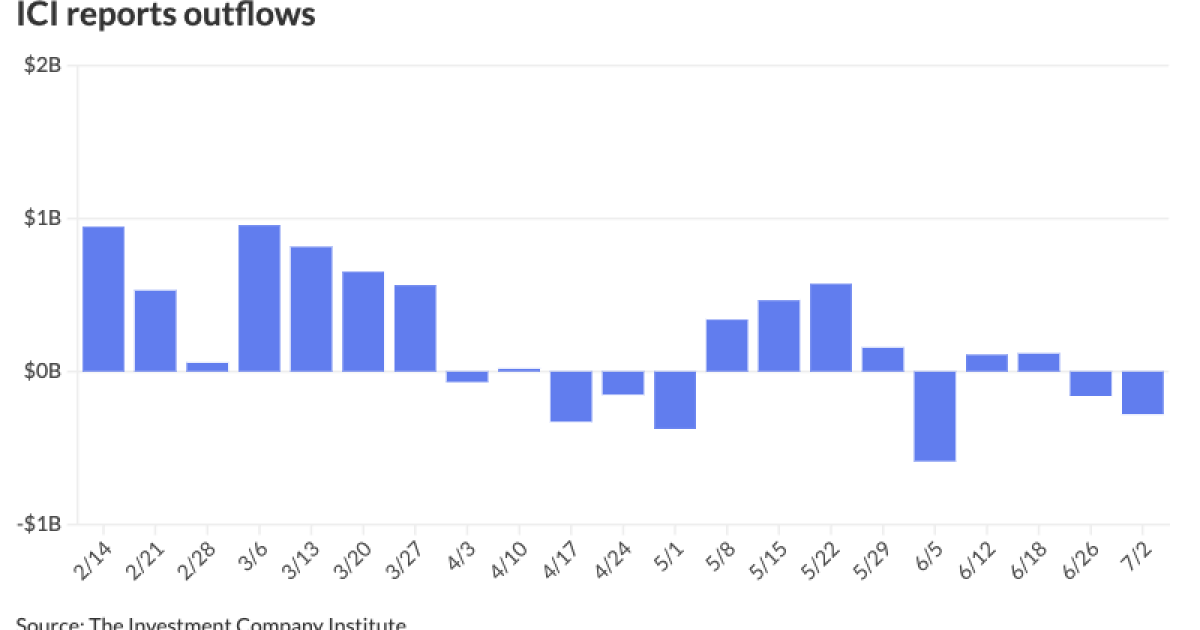 The Investment Company Institute reported Wednesday $279 million of outflows from municipal bond mutual funds for the week ending July 2 following $160 million of outflows the week prior.