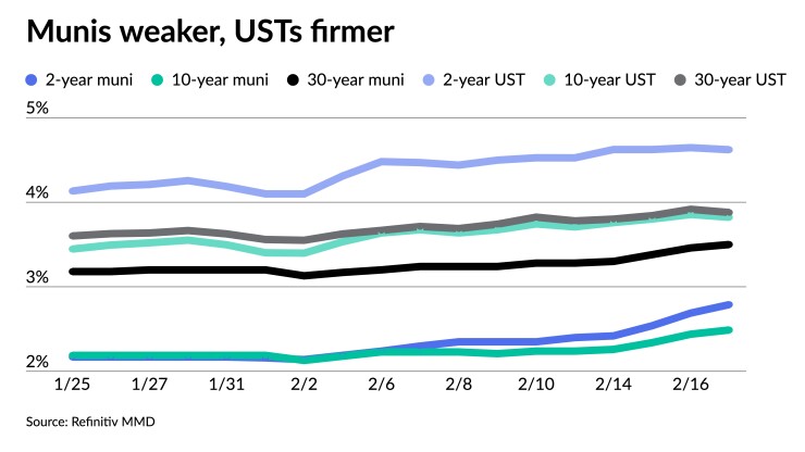 “The municipal market feels somewhat softer as scales continue to see cuts,” Burgess said Thursday. “The economic data we have seen this week points to an economy which remains robust and Fed policy which will clearly remain hawkish as they try to bring inflation to their 2% target,” he continued.